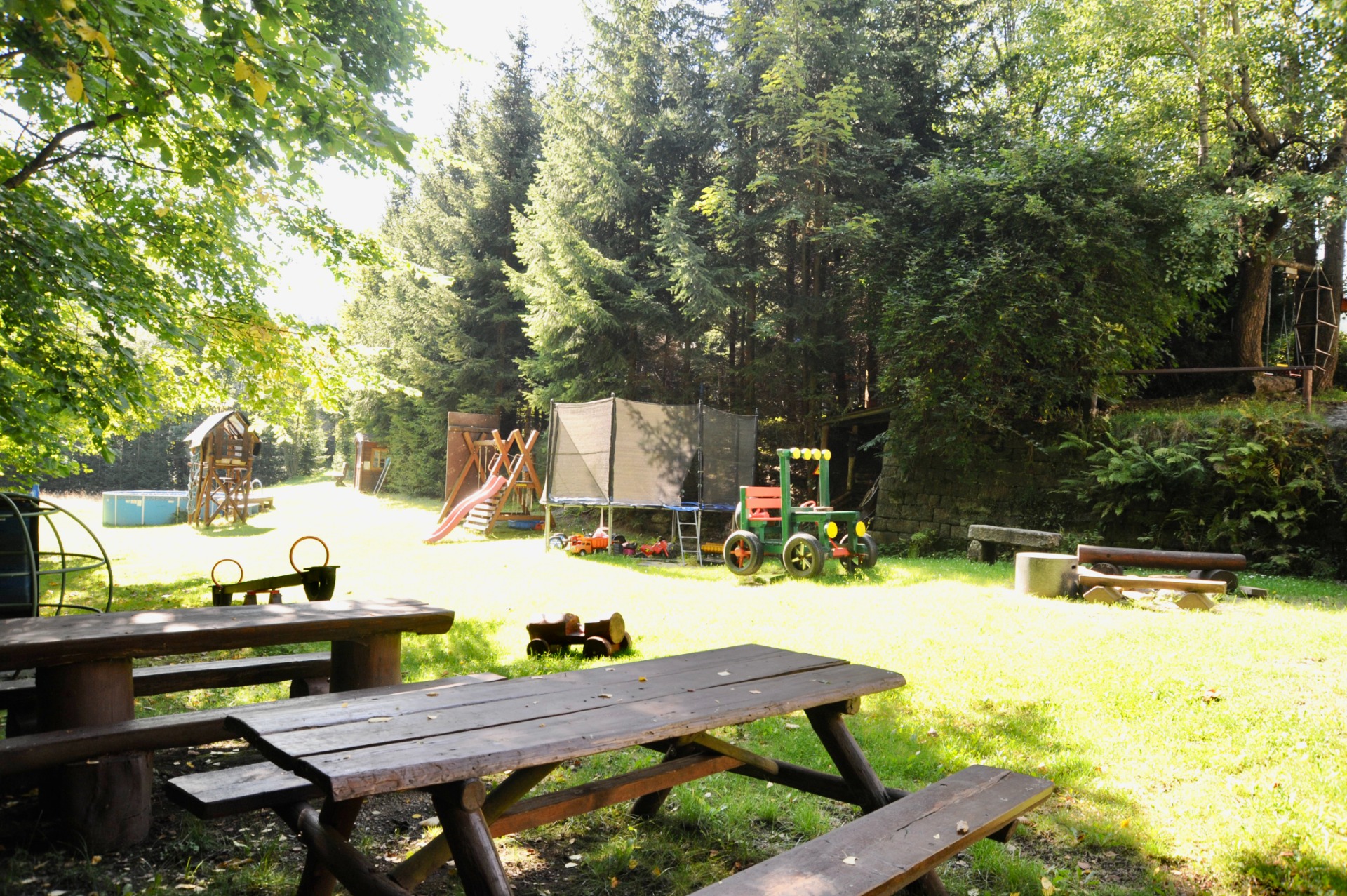 Naše chalupa leží na klidném místě u lesa, malé louky a potoka v Jizerských horách. Děti tu mají prostor běhat, lézt, skákat, objevovat a být celé dny venku. V létě je čeká trampolína, bazén, prolézačky, houpačky i potok, kde můžou stavět hráze, chytat pulce a hrát si celé hodiny.